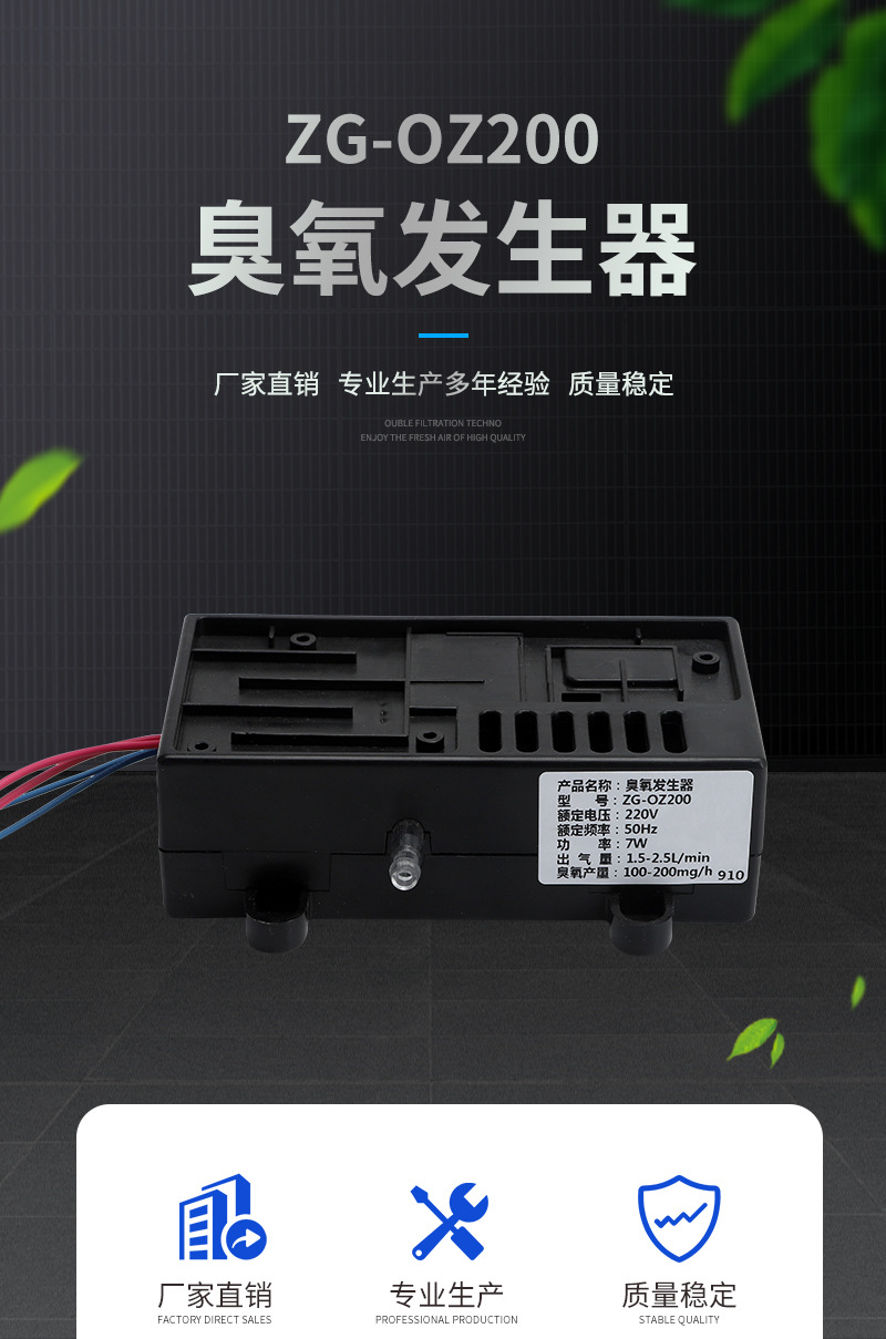 ?一體化整合了臭氧驅動電路、臭氧發生管、氣泵,結構緊湊、設計合理、統配性強